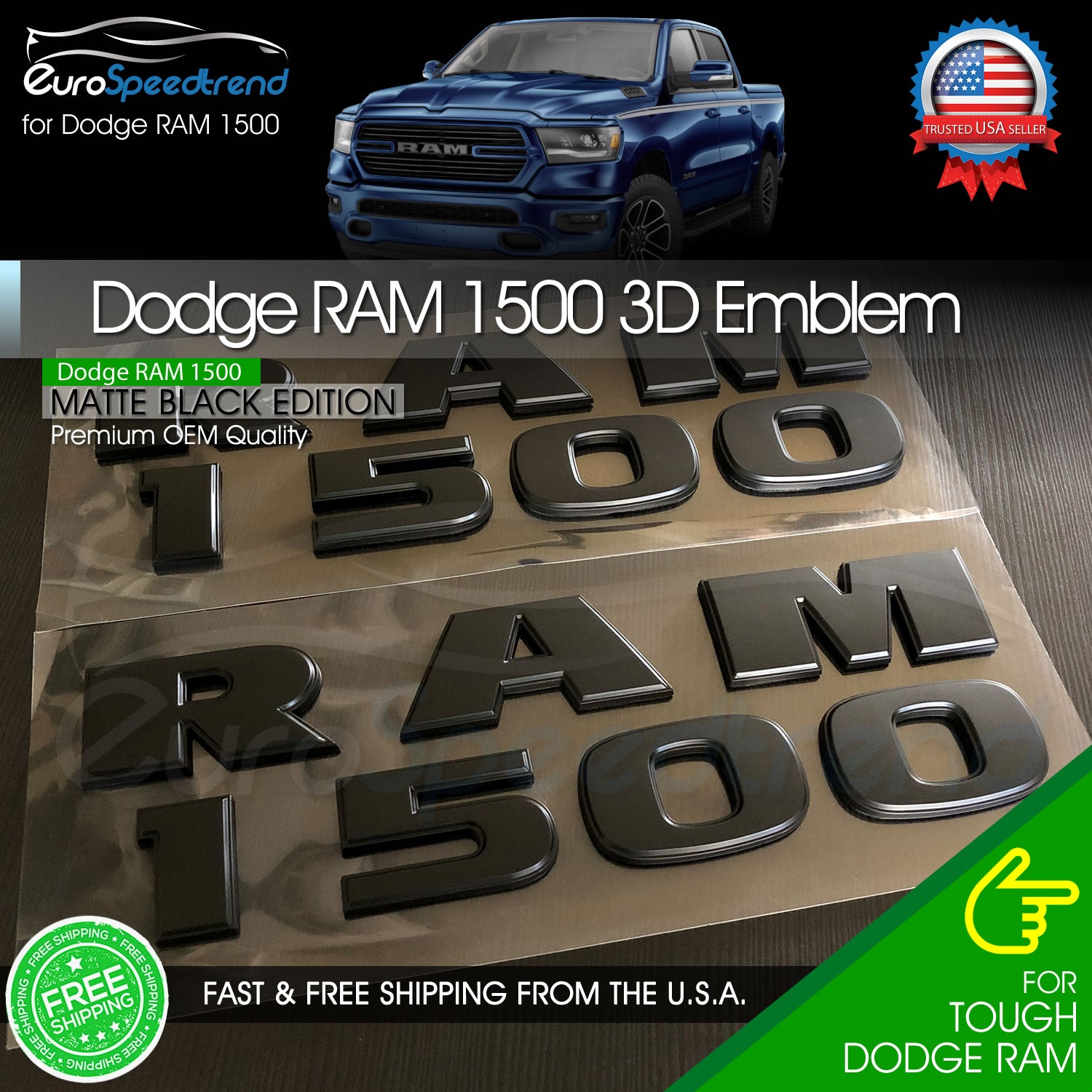 2x Premium Quality Matte Black Finish 3D "RAM 1500" Badge Emblem for Dodge RAM 1500 Trucks