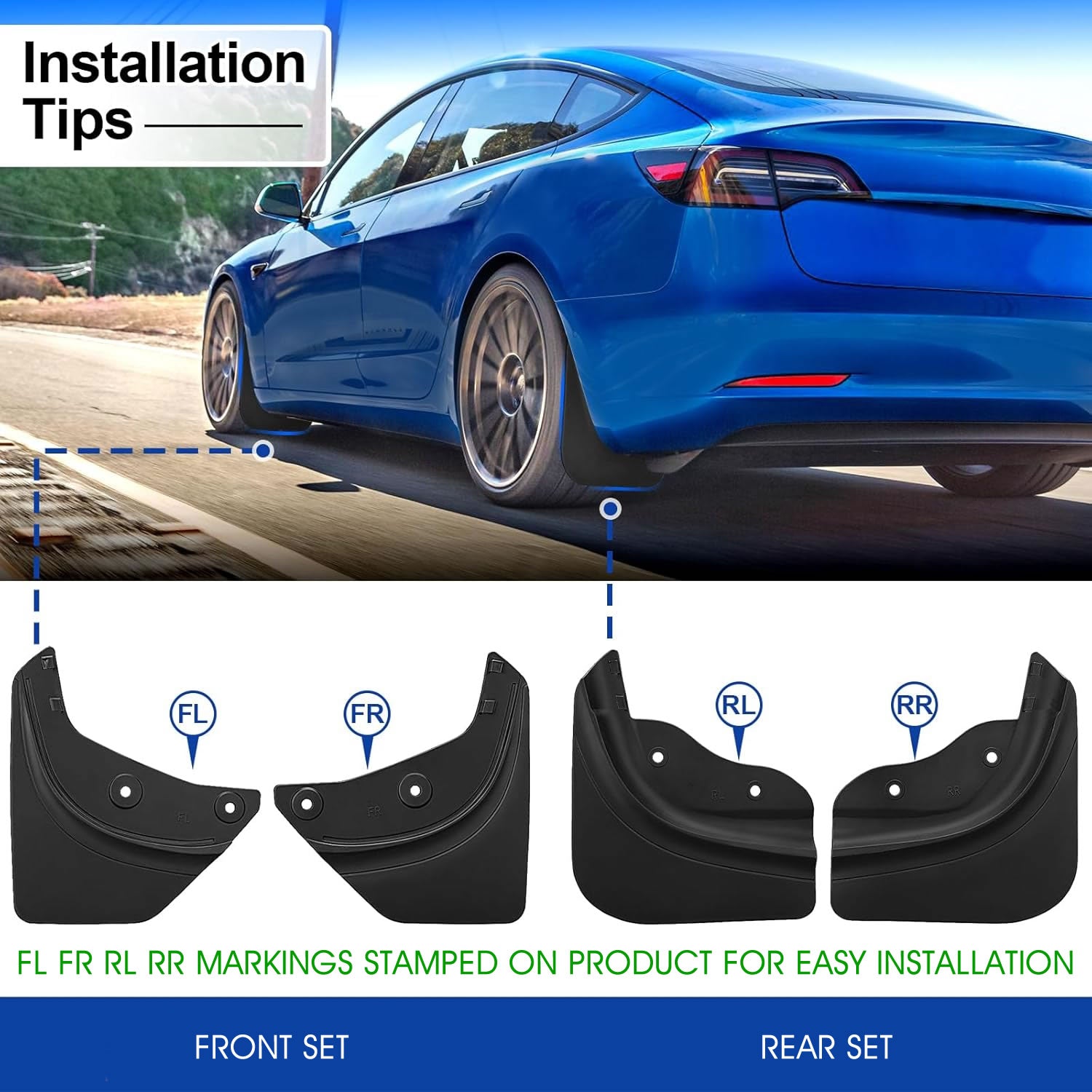 1x EuroSpeedTrend Premium Quality Mud Flaps Splash Guard Front and Rear All Weather Winter Sediment Protection for 2020-2024 Tesla Model Y